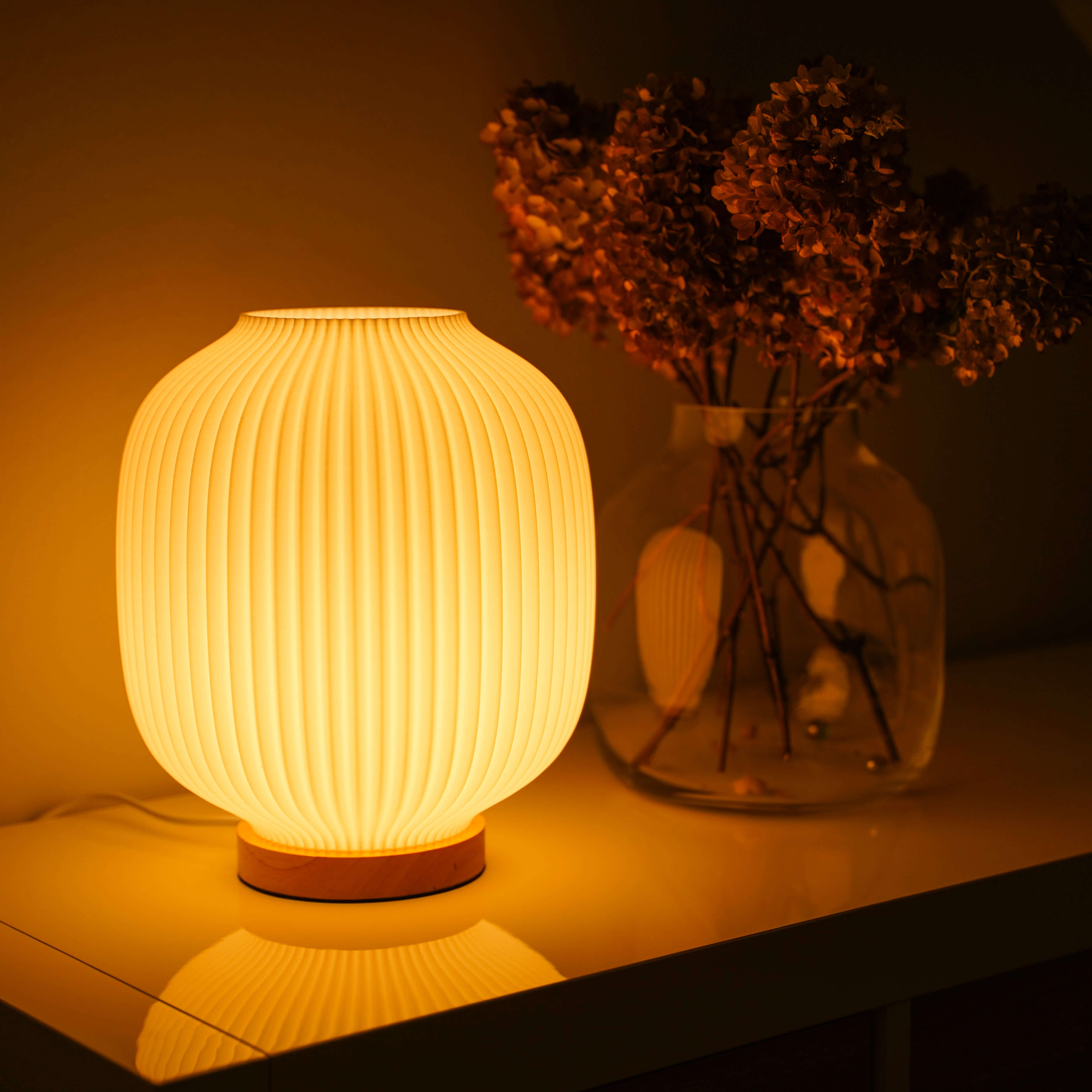 Jede unserer Leuchten ist mehr als nur eine Lichtquelle – sie ist ein handgefertigtes Unikat, das deinem Zuhause Charakter und eine unvergleichlich gemütliche Atmosphäre verleiht. Entdecke die Verbindung aus innovativer 3D-Druck-Technologie und der natürlichen Eleganz von massivem Eichenholz.